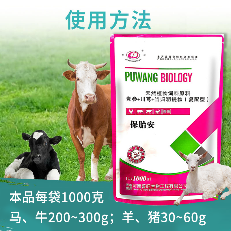 產品簡介:保胎安的功效有:氣血雙補、暖宮安胎、提高免疫力、減少流產死胎等,適用于各種養殖動物。