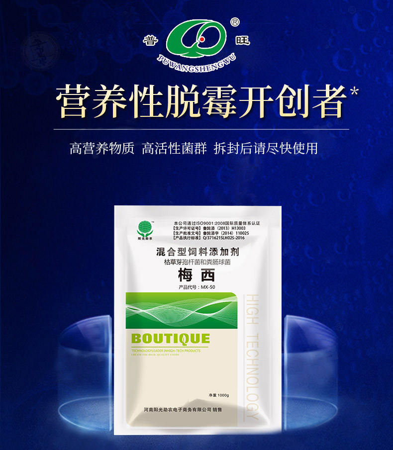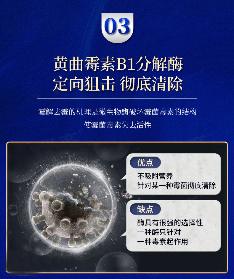 產品簡介:本品適用于黃曲霉毒素、玉米赤霉烯酮、嘔吐毒素等各種霉菌毒素污染的豬飼料、禽料、牛料。