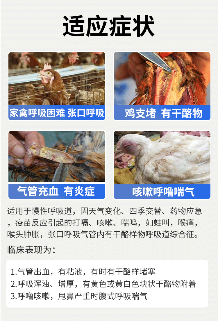 適用于呼吸型傳支傳喉,慢性呼吸道,因天氣變化、四季交替、藥物應(yīng)急,疫苗反應(yīng)引起的打嗝、咳嗽、喘鳴,如蛙叫,喉痛,喉頭腫脹,張口呼吸氣管內(nèi)有干酪樣物呼吸道綜合征。