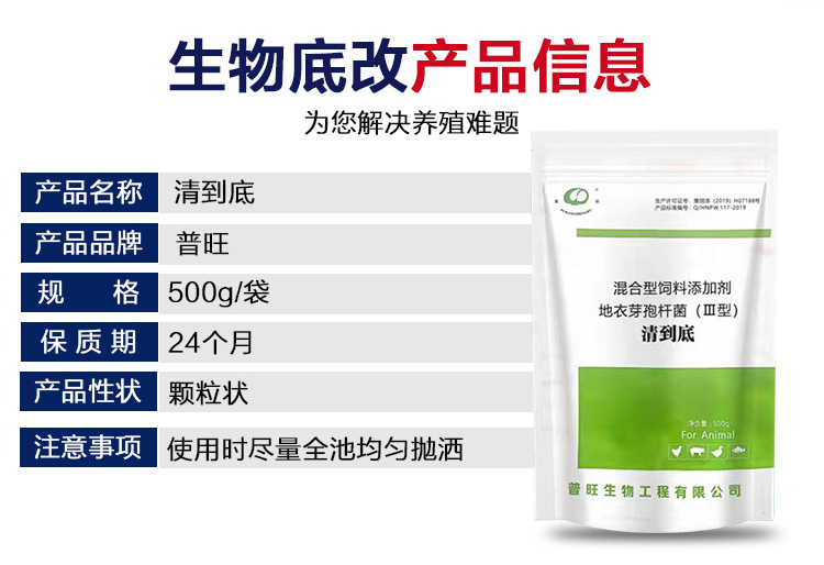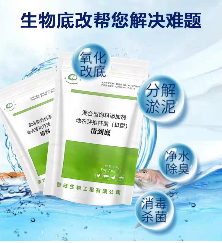 產品簡介:普旺生物水產藥清到底 改底調水增氧除臭分解淤泥混合型飼料添加劑-地衣芽孢桿菌