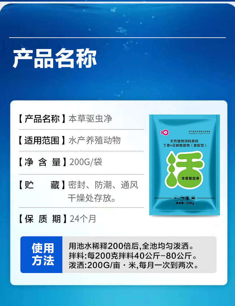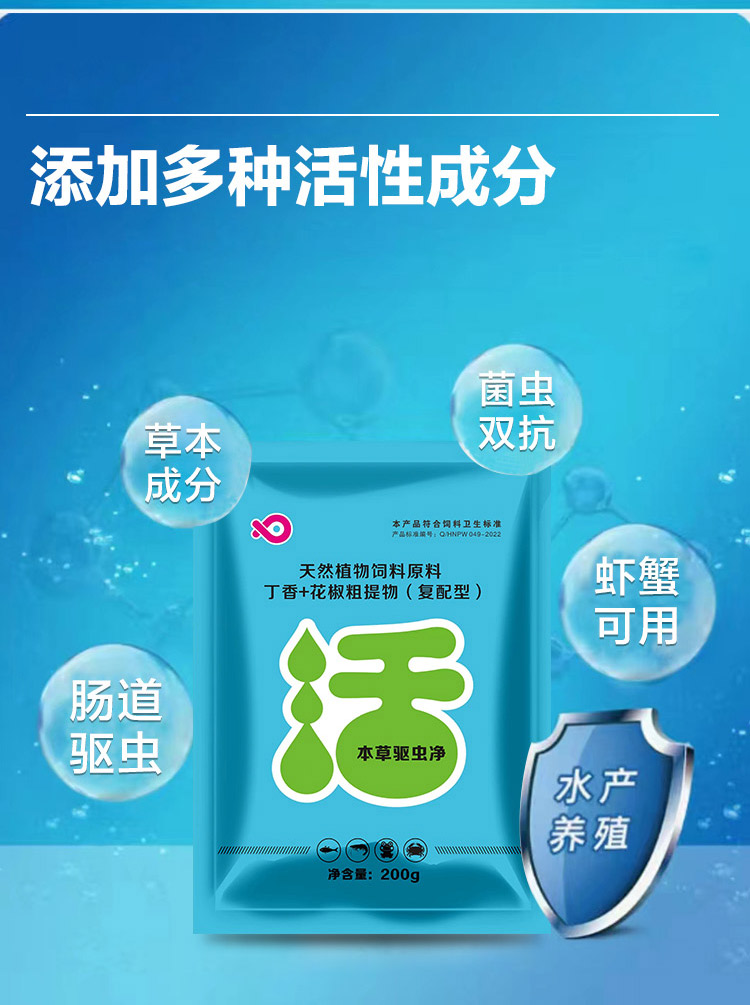 產(chǎn)品簡(jiǎn)介:止病于現(xiàn)在防患于未來 本草驅(qū)蟲凈 草本成分 菌蟲雙抗 腸道驅(qū)蟲 蝦蟹可用