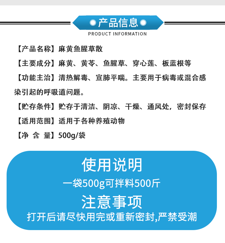 麻黃魚腥草散咳嗽喘氣久咳不愈畜禽通用