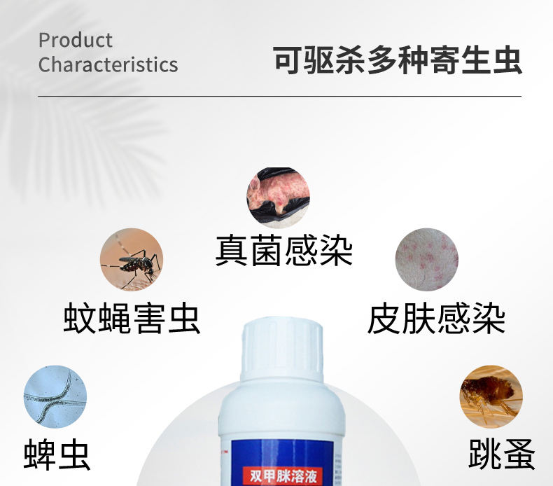 產品簡介:真菌螨蟲,外寄生蟲,家畜寵物均可使用,主要用于殺螨,亦用于殺滅蜱、虱等外寄生蟲