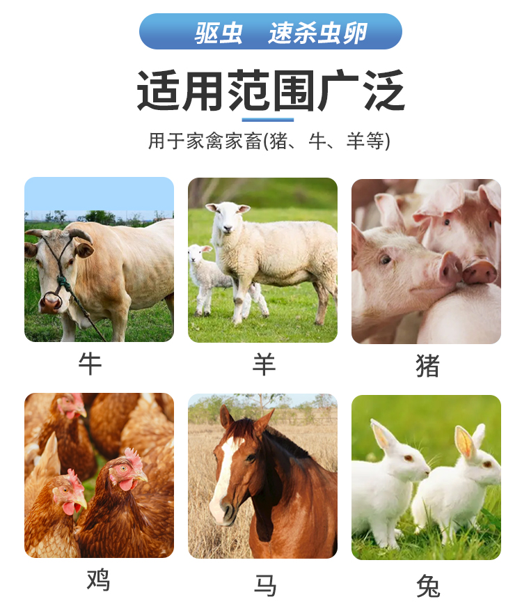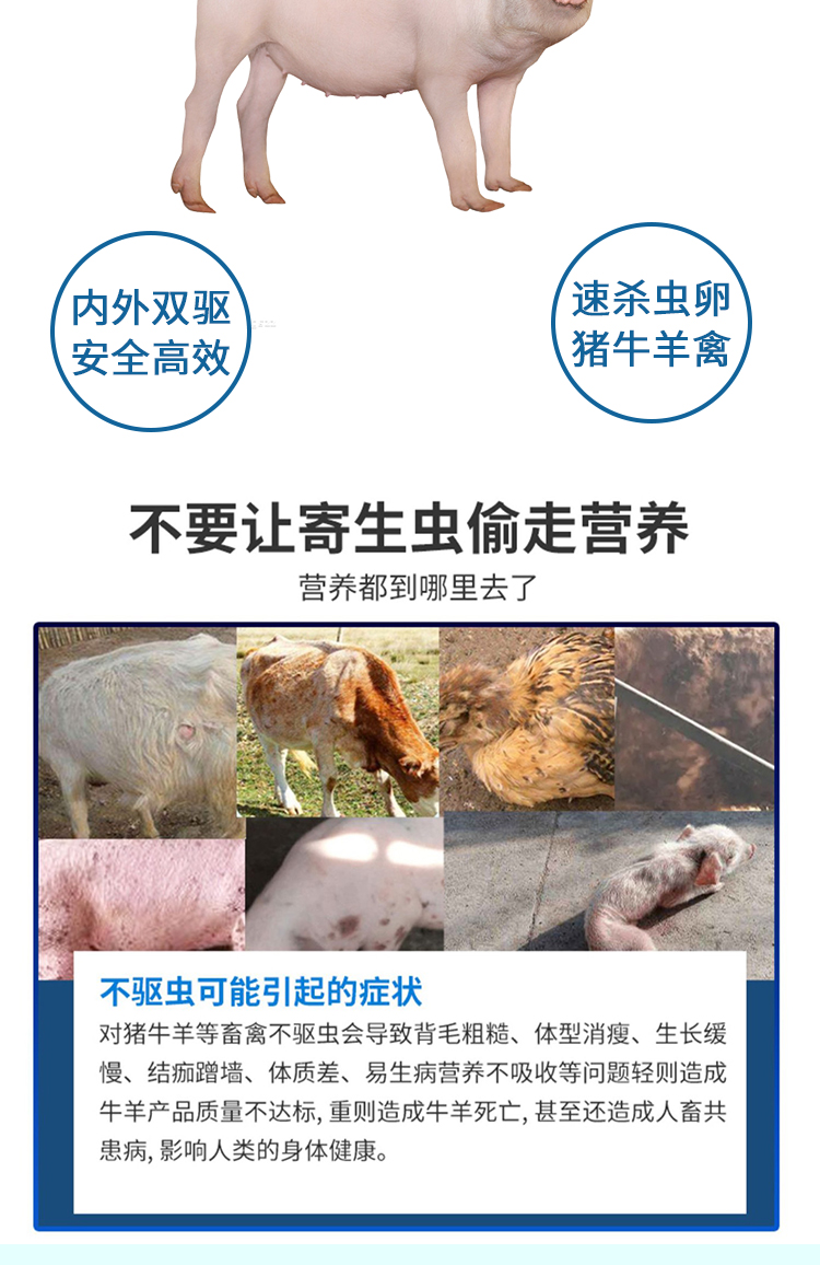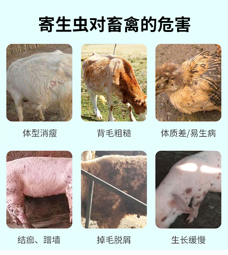 產(chǎn)品簡介:用于家禽家畜(豬、牛、羊)和禽的各種線蟲,疥螨病。蠅、蛆、虱、蜂等體內(nèi)外寄生蟲病! 安全高效,孕畜可用